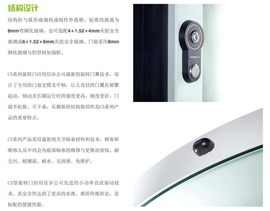 R3/R4.C系列三四翼旋轉門的起源,可以追溯到古老的木制門時代。高寒地區(qū)的人們發(fā)現(xiàn),在人員頻繁出入的重要場所安裝旋轉門,冬天能起到良好的保溫作用。