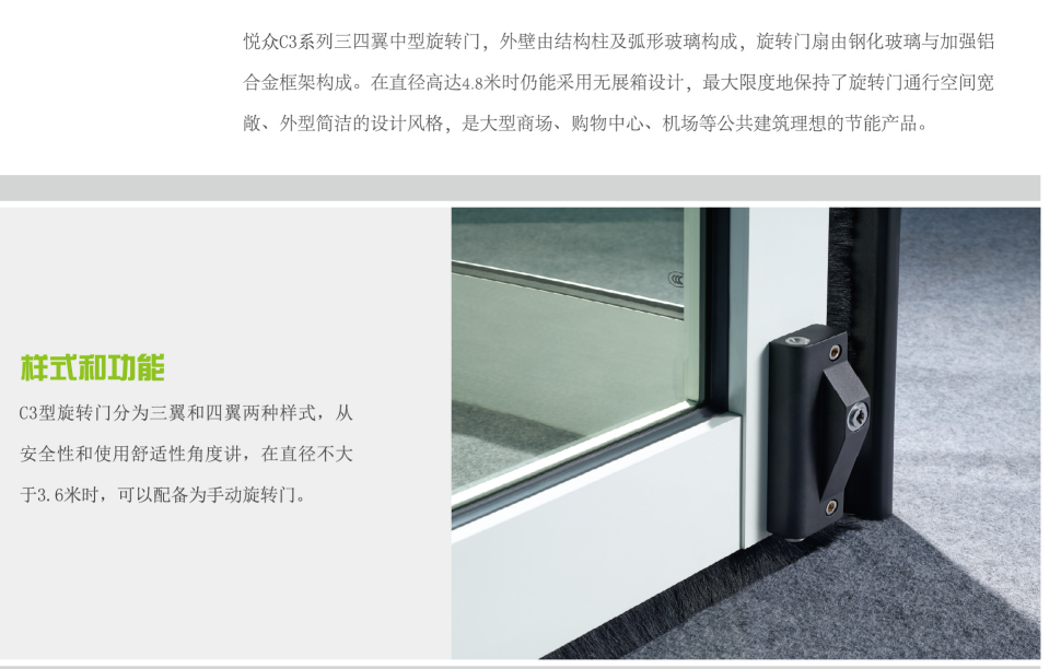 隨著金屬、玻璃等新材料的出現(xiàn),還有現(xiàn)代加工設備及門體制造工藝的普及,三四翼旋轉門產品的種類越來越多,性能越來越好,購買成本也越來越低。今天,這類產品已成為許多公共場所的標配。